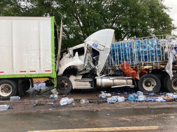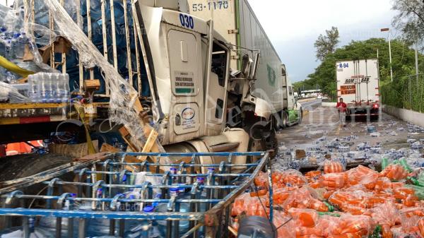 Según el reporte, un tráiler con tanque cisterna que llevaba una carga de sulfato de magnesio, se habría quedado sin frenos, recargándose en uno de los costados a otro tráiler de la marca Kenworth, el cual llevaba una carga de garrafones de agua, provocando que éste último se impactara contra otro tráiler que se encontraba detenido en el área de descanso.