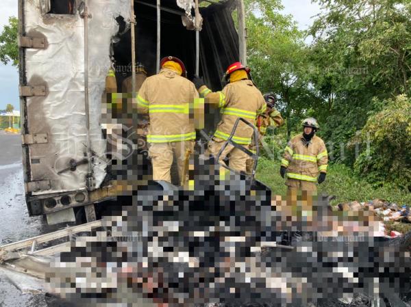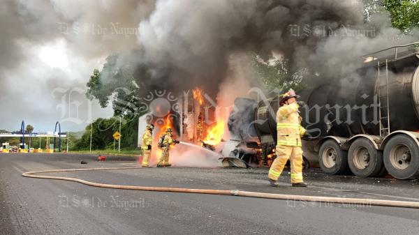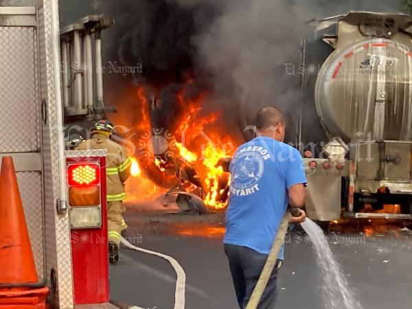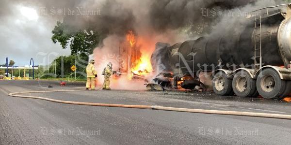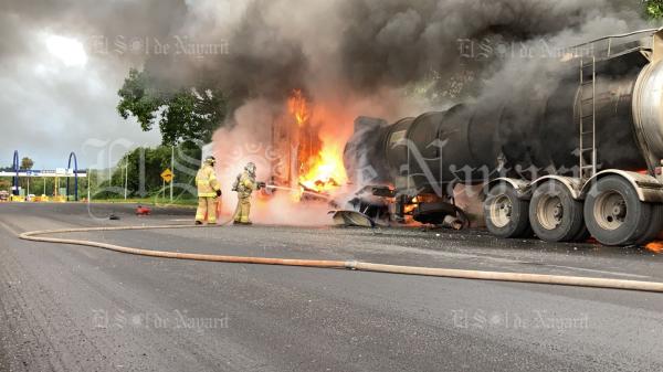 El tráiler continuó avanzando sin frenos, impactándose en la parte trasera de otro tráiler con un semirremolque. La unidad del tanque cisterna comenzó a incendiarse en el área de la cabina, la puerta se encontraba atorada, por lo que el conductor sacó rápidamente a su esposa y a su hijo de 6 meses de edad por la parte de arriba, sin embargo lamentablemente él no pudo salir, quedando calcinado.