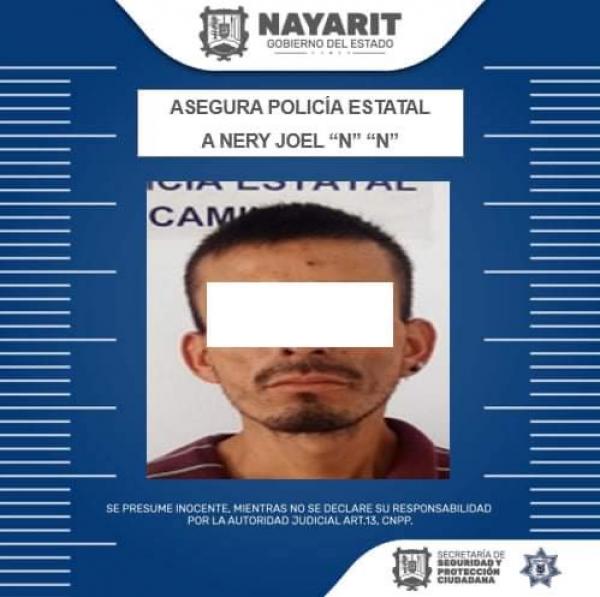6.- Nery Joel "N" "N", de 34 años, fue asegurado en la Santa Teresita de Tepic, por su presunta participación en el hecho delictuoso de delitos contra la salud, asegurándole un envoltorio de plástico conteniendo en el interior una sustancia cristalina y granulada con las características propias de la droga conocida como cristal.