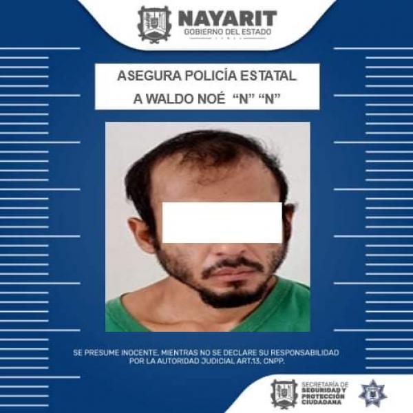 1.- Waldo Noé "N" "N", de 28 años, fue asegurado en la colonia el Rodeo de Tepic, por su presunta participación en el hecho delictuoso de delitos contra la salud, asegurándole un envoltorio de plástico conteniendo en el interior una sustancia cristalina y granulada con las características propias de la droga conocida como cristal.