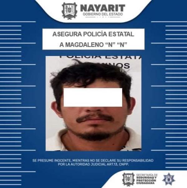 7.- Magdaleno "N" "N", de 31 años, fue asegurado en la colonia Valle de Matatipac de Tepic, por su presunta participación en el hecho delictuoso de delitos contra la salud, asegurándole una bolsa de plástico conteniendo en el interior un vegetal verde y seco con las características propias de la marihuana.