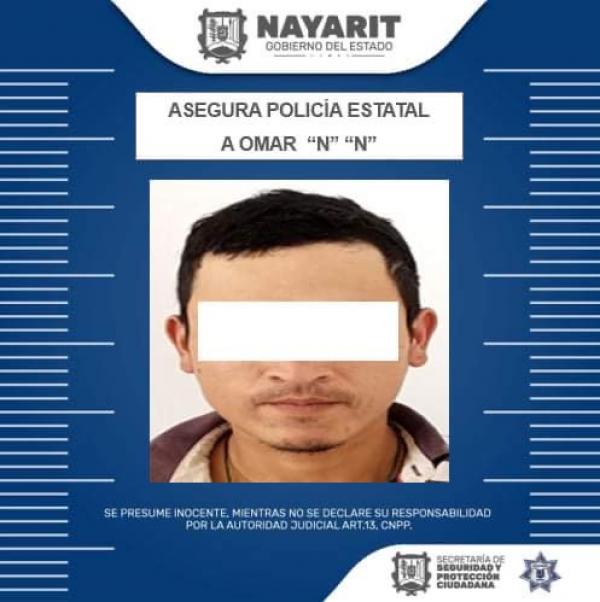 3.- Omar "N" "N", de 26 años, fue asegurado en la colonia Emiliano Zapata de Tepic, por su presunta participación en el hecho delictuoso de delitos contra la salud, asegurándole un envoltorio de plástico conteniendo en el interior una sustancia cristalina y granulada con las características propias de la droga conocida como cristal.