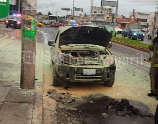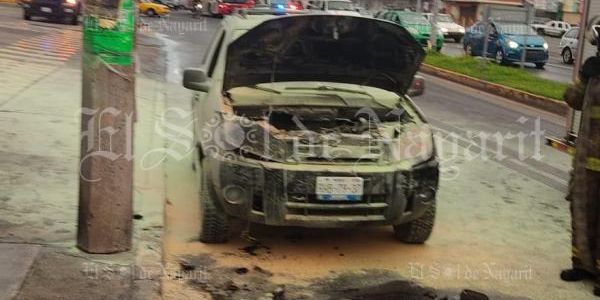 Una llamada al 911 alertó a las autoridades del incendio de una camioneta en de las acotaciones de la avenida tecnológico, provocando la movilización del cuerpo de bomberos.