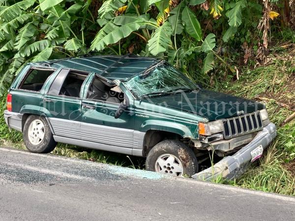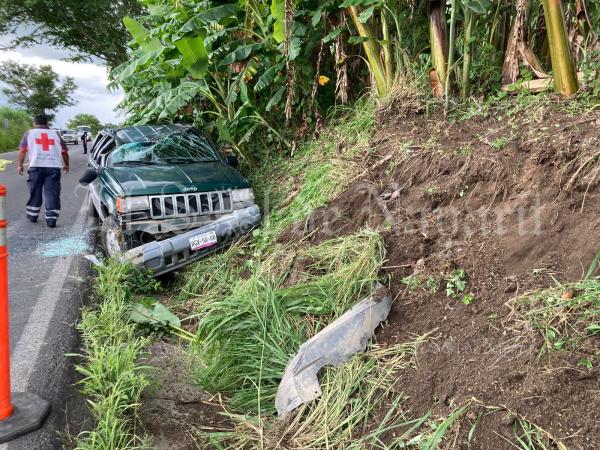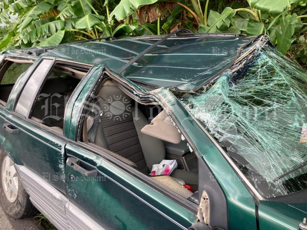 Según el reporte, la unidad circulaba con dirección de Xalisco a Compostela a exceso de velocidad, el conductor perdió el control del volante, saliendo de la carretera, luego se impactó contra un montículo donde hay unas plataneras, y terminó volcando aparatosamente.