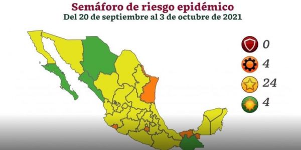 Será a partir del próximo lunes 20 de septiembre y hasta el 3 de octubre de 2021; de la misma manera que Nayarit otros 23 estados se mantienen en amarillo, cuatro estados en Naranja, cuatro en verde y ninguno en color rojo. Siendo la segunda ocasión en que ningún estado aparece en rojo en el mapa.