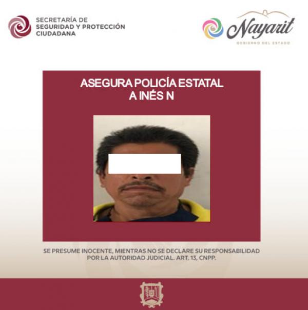2.- Inés N, de 52 años, fue asegurado en la colonia Valle de Matatipac de Tepic, por su presunta participación en el hecho delictuoso de posesión de armas prohibidas.