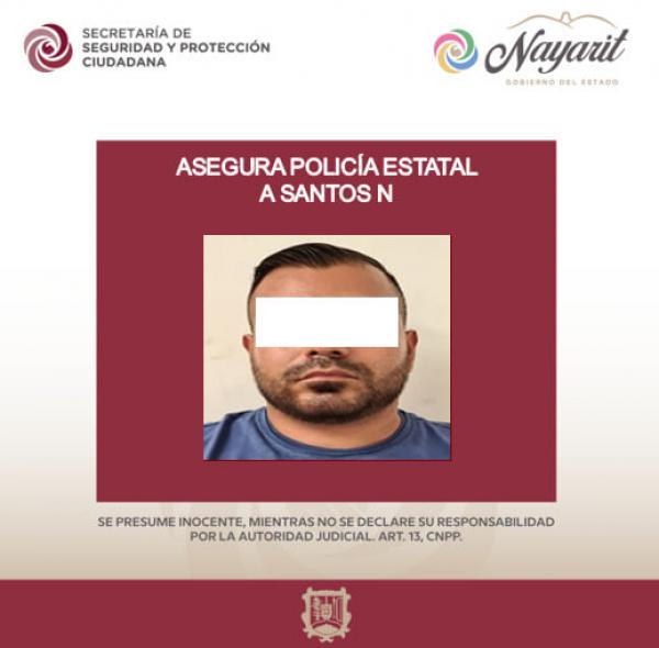 9.- Santos N, de 31 años, fue asegurado en el municipio de Compostela, dando cumplimiento a la orden de aprehensión por su presunta participación en el hecho delictuoso de violencia familiar y lesiones en agravio de dos personas del sexo femenino.