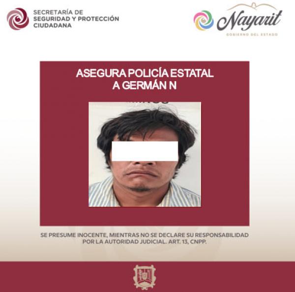 4.- German N, de 30 años, fue asegurado en la colonia Valle de Matatipac de Tepic, por su presunta participación en el hecho delictuoso de allanamiento de morada.