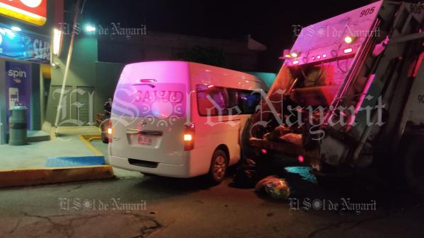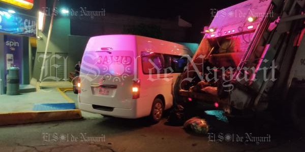 Según el reporte, un camión recolector de basura se encontraba dando reversa sobre la avenida Allende en el cruce mencionado, cuando una combi de transporte de la Secretaría de Salud intentó ganarle el paso, impactándose en la parte trasera izquierda del camión.