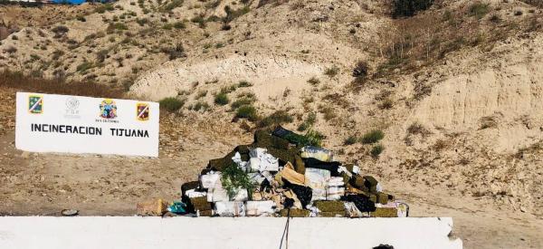 Cabe señalar que, del 1 de diciembre de 2018 al 30 de septiembre de 2021, en Baja California se han incinerado 155 toneladas de narcóticos. El evento de incineración se llevó a cabo en la ciudad de Tijuana y se contó con la asistencia de autoridades militares y del Órgano Interno de Control de la FGR, quien supervisó que el proceso se llevara a cabo en términos de la normatividad de la materia aplicable.