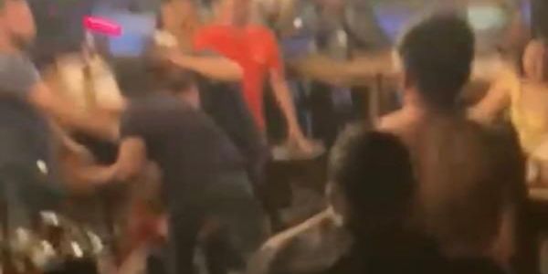 En el video se logra escuchar el tronido de algunas botellas de vidrio, mientras los jóvenes peleaban a golpes.