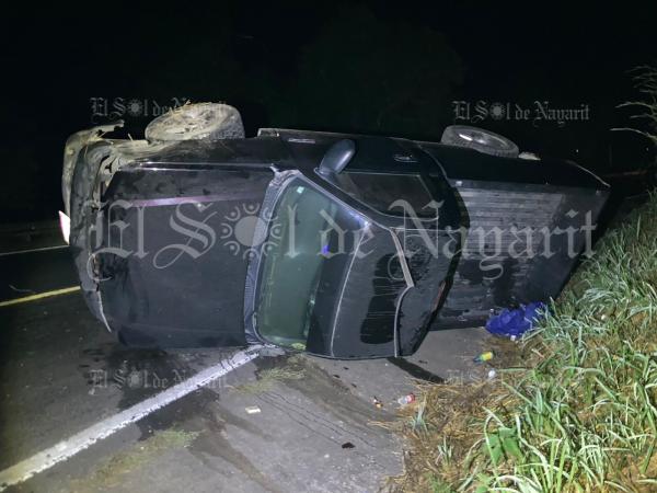 Esta madrugada se registró la volcadura de una camioneta sobre la carretera federal 15 libre Tepic - Mazatlán aproximadamente en el kilómetro 10+500, pasando el parador conocido como Las Cumbres.