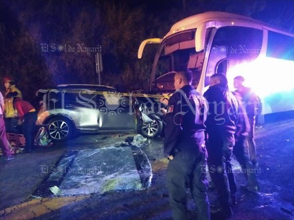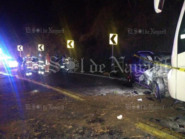 La madrugada de este sábado, un hombre perdió la vida tras sufrir brutal choque en su camioneta impactándose de manera frontal en contra de un autobús, mientras una joven que lo acompañaba resultó lesionada sobre la carretera federal 200 Tepic - Puerto Vallarta.