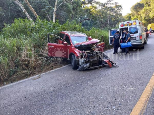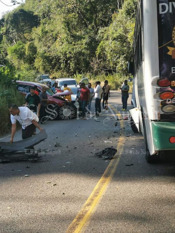 Donde un camión de pasajeros de la línea Compostela, de la ruta Puerto Vallarta-Sayulita y una camioneta tipo X-trail, de color tinto, con placas de circulación del Estado de Jalisco, de habrían impactado de frente, quedando dos mujeres heridas mismas que viajaban en dicha camioneta.