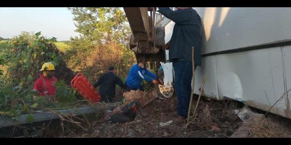 En el lugar se confirmó que dos personas se encontraban prensadas debajo de un de trasporte urbano, mismo que se había impactado contra el borde de contusión.