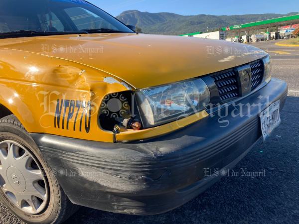 Se vieron involucrados una motocicleta de la marca Italika tipo FT180 en color negro con franjas azules, y un taxi tipo Tsuru en color amarillo con número económico NTP770.