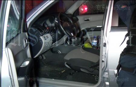 Sobre la Av. Zapopan quedó la camioneta Mitsubishi color gris, con placas de circulación PC 61-485 del estado de Nayarit, con varios impactos de arma de fuego de grueso calibre, al menos siete perforaciones provocadas por las balas se podían apreciar en la camioneta, una de ellas en el parabrisas, una en el capacerte, dos más del lado del conductor y tres más del lado del copiloto.