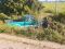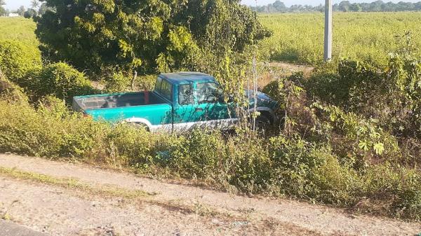 En cuanto a la camioneta Ford, terminó volcada con sus cuatro llantas al aire debido al peso de las 27 personas que transportaba en la parte de la caja.