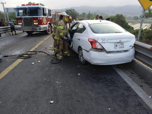 Elementos bomberiles de base Guayabitos y base Nuevo Nayarit del estado se trasladaron hasta el lugar del reporte, dónde tuvieron a la vista un vehículo de la marca Nissan, Tiida, en color blanco del servicio público y uno más del mismo color, marca Nissan, Versa, ambos con huellas de impacto en su parte frontal.