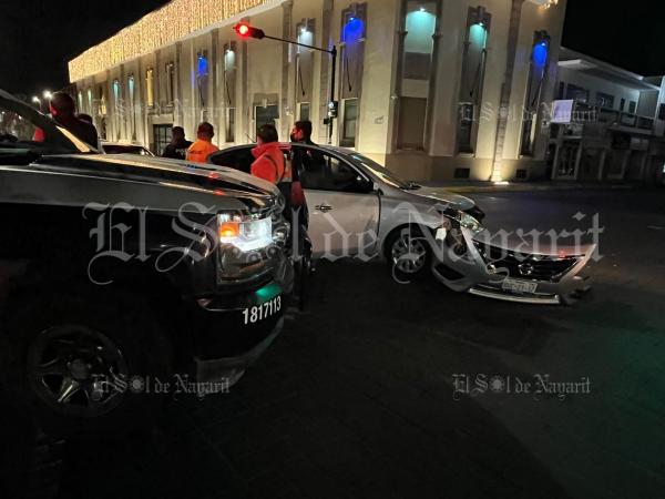 Un aparatoso accidente se suscitó la noche de este jueves en el cruce de la avenida México y la avenida Allende en la capital nayarita.
