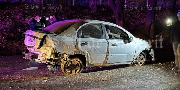 Una aparatosa volcadura se registró en el Libramiento Carretero de Tepic, a la altura de la Colonia del Bosque.