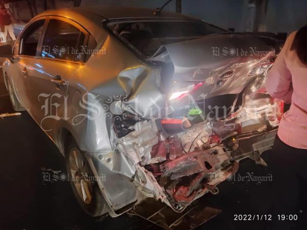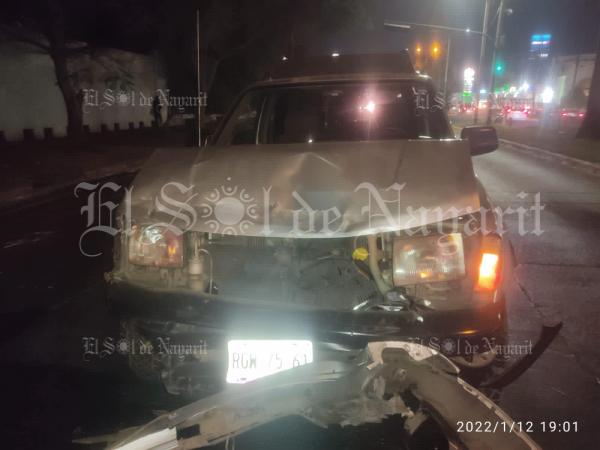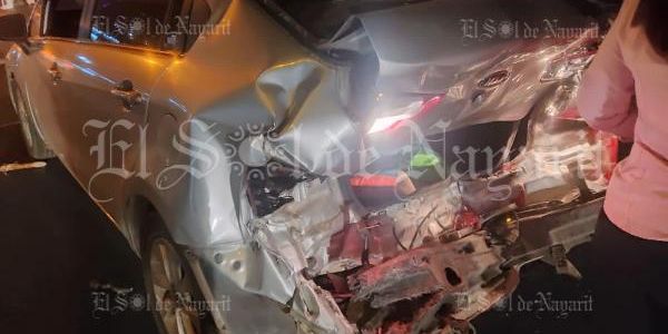 Los primeros reportes indican que frente a la central de autobuses Tepic, un vehículo Volkswagen con placas de circulación RGZ-25-20, fue impactado por un Kia color gris con placas VDT-750-A, el cual a su vez fue impactado por una camioneta con placas RGW-61, esta última quedó con su parte frontal completamente destrozada.