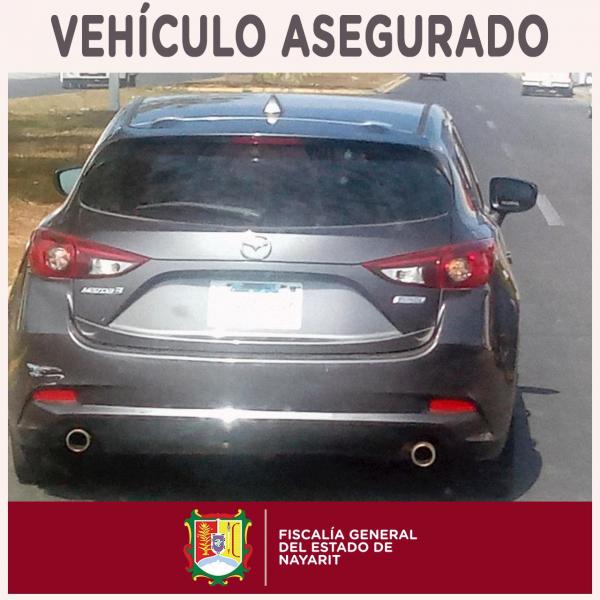 Se trata de un vehículo de la marca Mazda 3, tipo Sedán en color gris, el cual ya fue asegurado por las autoridades.