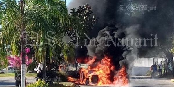 Este sábado, un hombre perdió su camioneta luego de que esta fuera completamente consumida por el fuego en Bahía de Banderas.