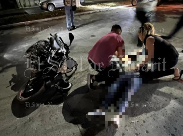 Una mujer resultó lesionada luego de derrapar en su motocicleta en el Fraccionamiento Villas del Parque en la capital nayarita.