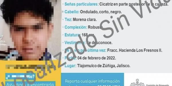 El joven Eduardo Salomón de 16 años de edad fue localizado sin vida en el municipio de Tlajomulco de Zúñiga, Jalisco, luego de ser reportado como desaparecido el pasado viernes 4 de febrero.