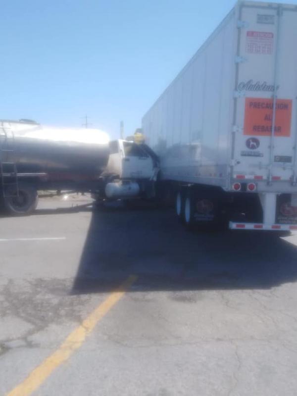 Se trata de una pipa en color blanco la cual se impactó contra la caja de un tráiler en color blanco sobre la carretera ya mencionada.