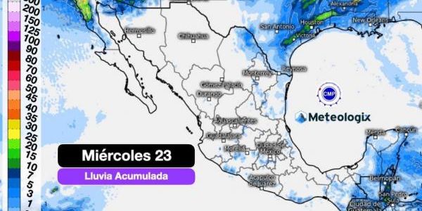 Durante el miércoles se estiman lluvias ligeras a moderadas sobre el noroeste de Baja California y frontera de Sonora. Además de lluvias aisladas sobre montañas del occidente y centro.