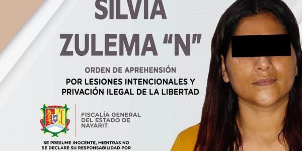 Fiscalía General de Nayarit a través de la Agencia de Investigación Criminal, dio cumplimiento a una orden de aprehensión contra Silvia Zulema N, por su probable responsabilidad penal en hechos que la ley señala como delitos de lesiones intencionales y privación ilegal de la libertad, cometidos en agravio de una persona de sexo femenino.