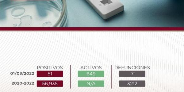 Asimismo, se contabilizan en total 56, 935 personas que han dado positivo a la prueba COVID-19 desde la llegada de la pandemia al estado. Por otro lado, suman 649 casos activos acumulados en Nayarit.