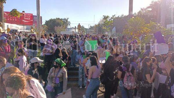En Tepic, Nayarit, alrededor de las 4:00 de la tarde, alrededor de ochocientas mujeres se reunieron en la Hermana Agua, punto de partida de la marcha de cada año, portando pañuelos y prendas color verde y/o morado, llevando también cartulinas con diversos mensajes.