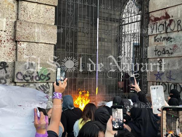 Banquetas y la misma plaza fueron marcadas por las decenas de mujeres que se manifestaron este día. Por otro lado, la catedral de Tepic, pese a que feligreses hicieron lo posible por evitar que fuera pintada e incluso colocar una barrera de madera entre los muros y las mujeres, finalmente fue igualmente pintada.