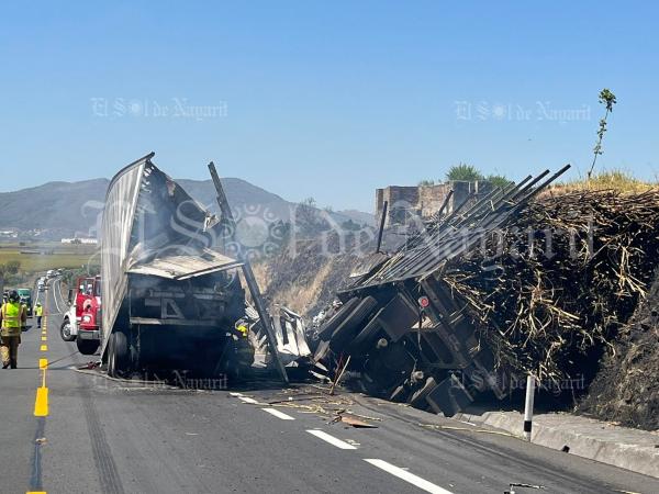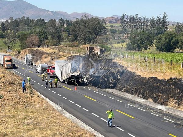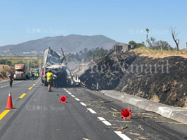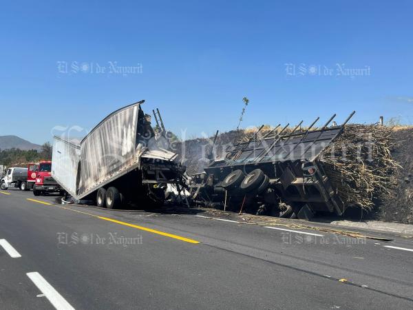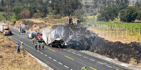 Según el reporte, un camión cañero se quedó sin frenos y terminó impactando a un tráiler en su parte trasera, posterior a ello el camión comenzó a incendiarse, provocando que también se prendieran fuego varios metros de pastizales que se encuentran al costado de la cinta asfáltica.