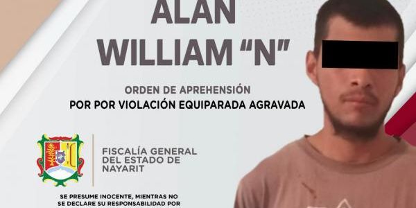 Fiscalía General de Nayarit a través de la Agencia de Investigación Criminal ejecutó una orden de aprehensión contra Alan William "N", en el poblado La Presa, municipio de Santiago Ixcuintla, por su probable responsabilidad penal en hechos que para la ley constituyen el delito de violación equiparada agravada, cometido en agravio de una menor de edad de identidad reservada.