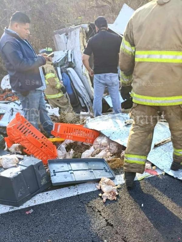 Se vieron involucrados un tráiler de la marca Kenworth en color rojo, el cual transportaba tomate y provenía de Sinaloa; y una camioneta de la empresa "El Avión", transportaba pollos.