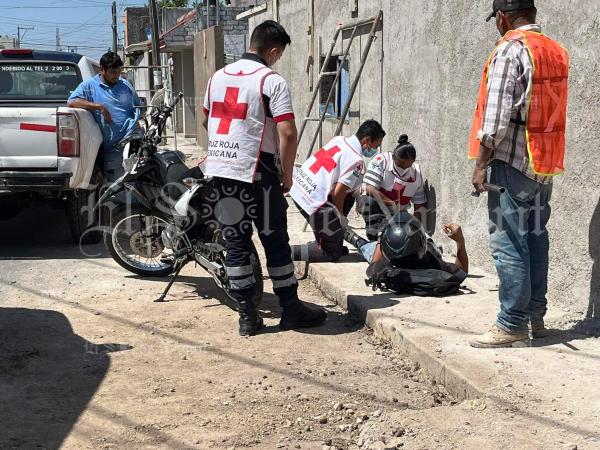 El masculino, conductor de la unidad de dos llantas quedó tendido sobre el pavimento tras los hechos, presentando algunas lesiones, mismas que fueron atendidas por socorristas de Cruz Roja Mexicana.