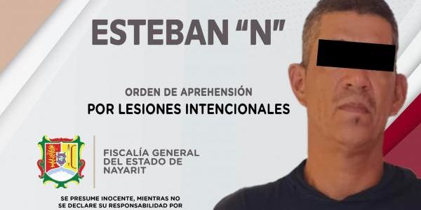 En el poblado San Vicente, municipio de Bahía de Banderas, elementos de la Agencia de Investigación Criminal ejecutaron una orden de aprehensión contra Esteban "N", por su presunta responsabilidad penal en hechos que la ley señala como delito de lesiones intencionales, cometido en agravio de una persona de sexo femenino de identidad reservada.