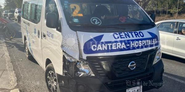 Los primeros reportes indican que una combi de la ruta Canteras-Hospitales, impactó por alcance a un taxi color gris, con placas de circulación 27-74-MDE.