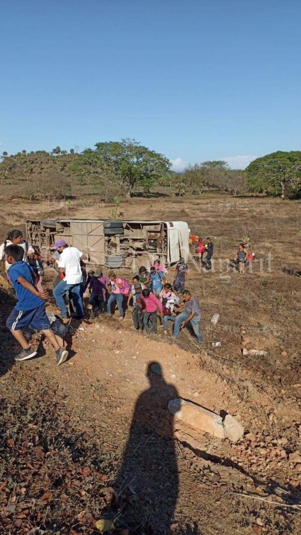 18 personas resultaron lesionadas luego de sufrir un aparatoso accidente durante la mañana de este martes sobre la carretera Rosamorada - San Juan Bautista, en el municipio de Rosamorada.