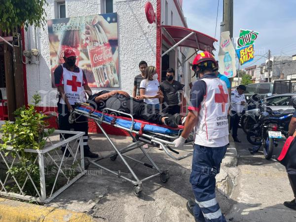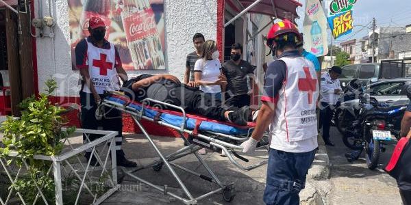 Tras el fuerte impacto, el conductor de la unidad de dos llantas resultó con varias lesiones en su cuerpo, siendo atendido por socorristas de la Cruz Roja Mexicana.