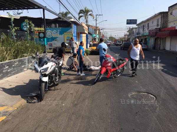 Se vieron involucrados un vehículo de la marca Nissan en color amarillo con placas RHC-78-51 de Nayarit, y una motocicleta de la marca Yamaha en color blanco con placas de circulación X49ZS.