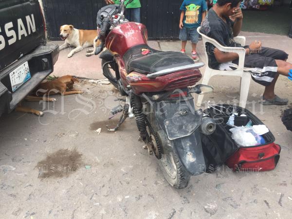 Paramédicos de la Policía Estatal arribaron al lugar y atendieron al hombre que tripulaba la motocicleta quien resultó lesionado con una posible fractura en su pie derecho, será trasladado a un hospital para recibir atención médica.