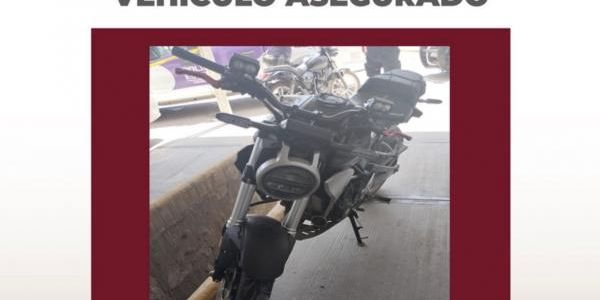 Se trata de un vehículo marca Honda CB 300, color negro, modelo 2019, asegurado en las instalaciones de REPUVE del municipio de Santiago Ixcuintla, durante la verificación correspondiente.