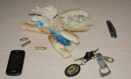 Así mismo Héctor José Raya Rafael, el cual llevaba una caja de cartón con la leyenda aceite cristal la cual contiene 7 piezas de bolillo y en el interior de los mismos se encontraron ocultos envoltorios de plástico transparente que contienen en su interior un polvo blanco con las características propias de la cocaína, siendo en 4 de los bolillos donde se encontró una piedra cristalina con las características propias del cristal, asimismo se les aseguró una navaja en color plata con madera y tres cartuchos útiles calibre 0.38 mm.