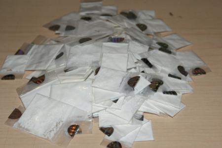 Un bolso tipo mariconera color negro que contenía en su interior 162 envoltorios con un polvo blanco con las características de la cocaína con un peso aprox. de 73.3 gramos, así como 70 envoltorios de aluminio conteniendo cada uno una piedra de color amarillento al parecer cocaína base con un peso aprox. de 18.5 gramos.