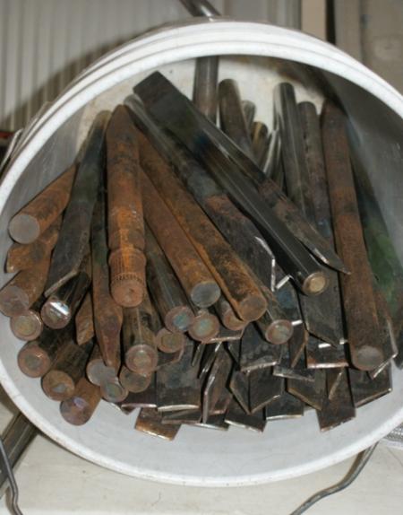 * 35 cinceles planos de fierro forjado de 40 cm. aprox. de largo.